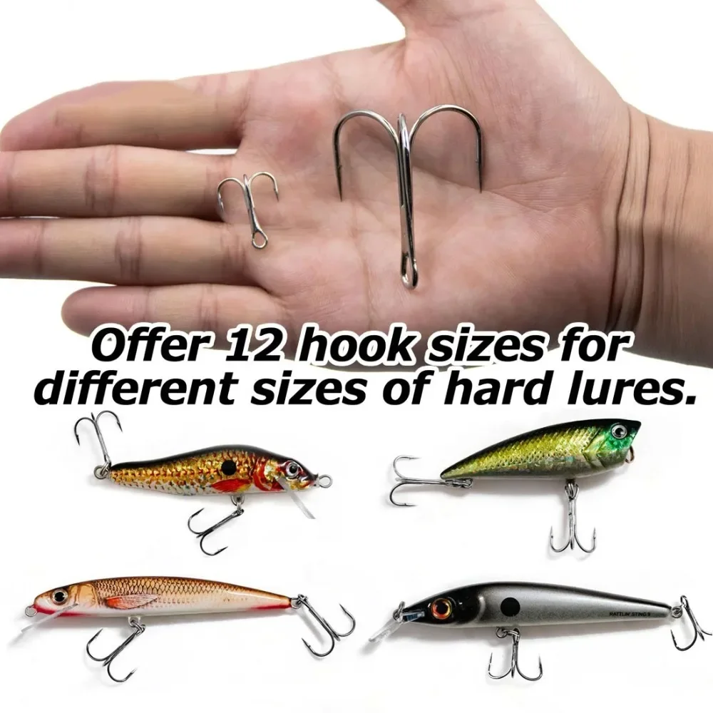 â–ºPerfect Choices for Fishing Enthusiasts: Perfect and reliable replacement treble fishing hooks. Treble Hooks are loaded in a re-usable plastic box, perfect for damaged hooks on your lure. Great gift for novice and experienced anglers.