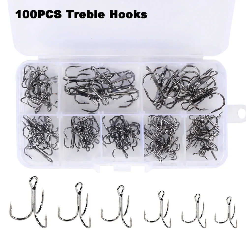 100Pcs 2# 4# 6# 8# 10# Super Strong Fishing Hook High Carbon Steel Treble Overturned Hooks Fishing Tackle Round Bend Treble Bait