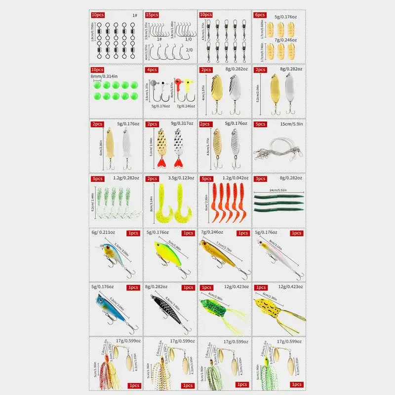 3.Versatile Fishing Kit: With a 97-piece fishing lure set and tackle box, this kit provides almost all the accessories you need for successful bass fishing. It contains a variety of fishing accessories, suitable for any season and any water area, ensuring you have a diverse range of options to enhance your fishing experience.
