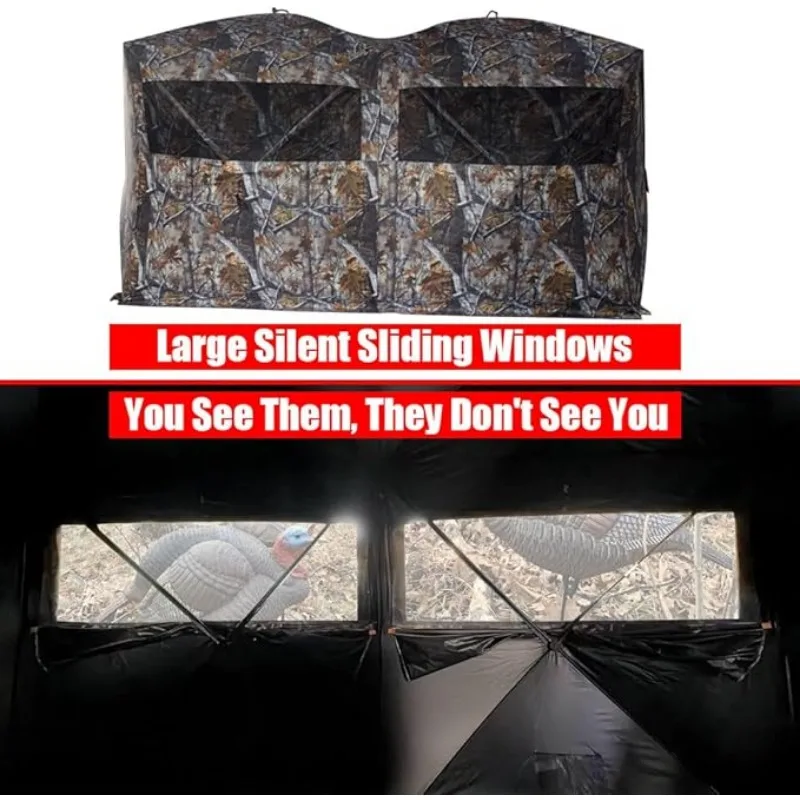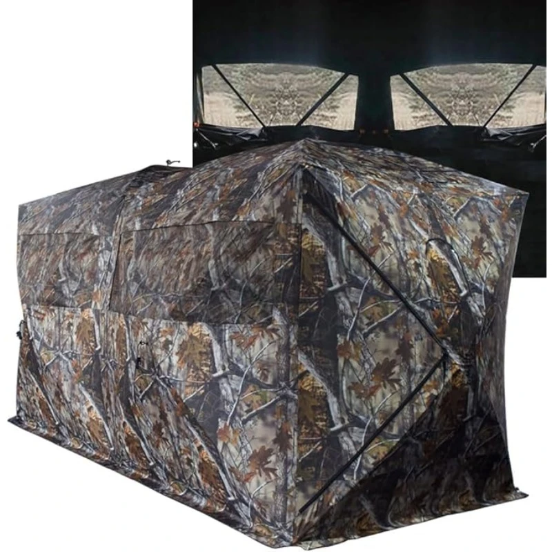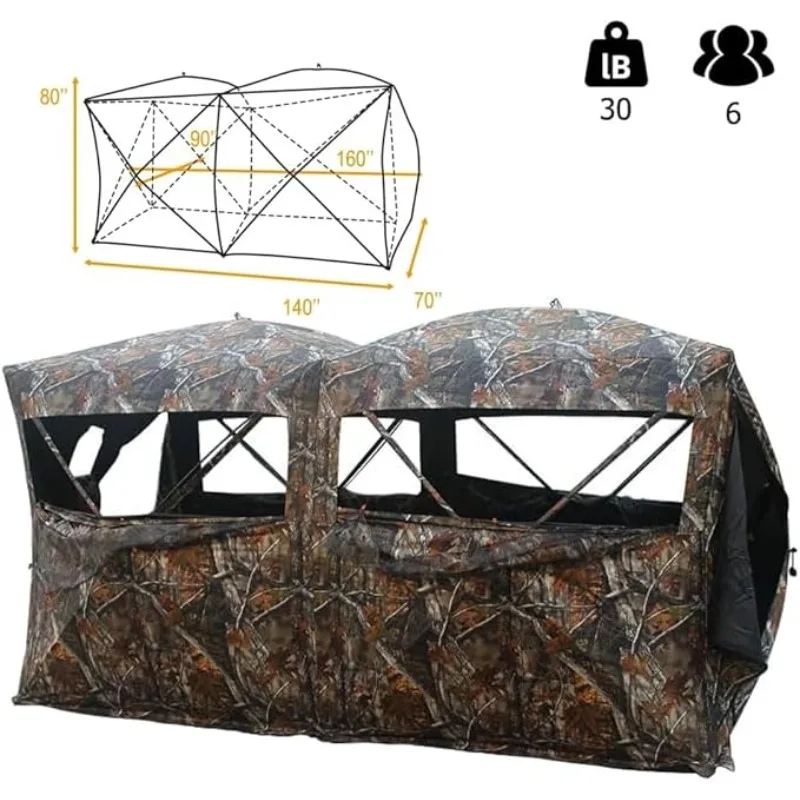 Bunkhouse Pop Up Portable 6 Person Side-by-Side Hunting Blind, Footprint: 140″x70″ with 80″ Height