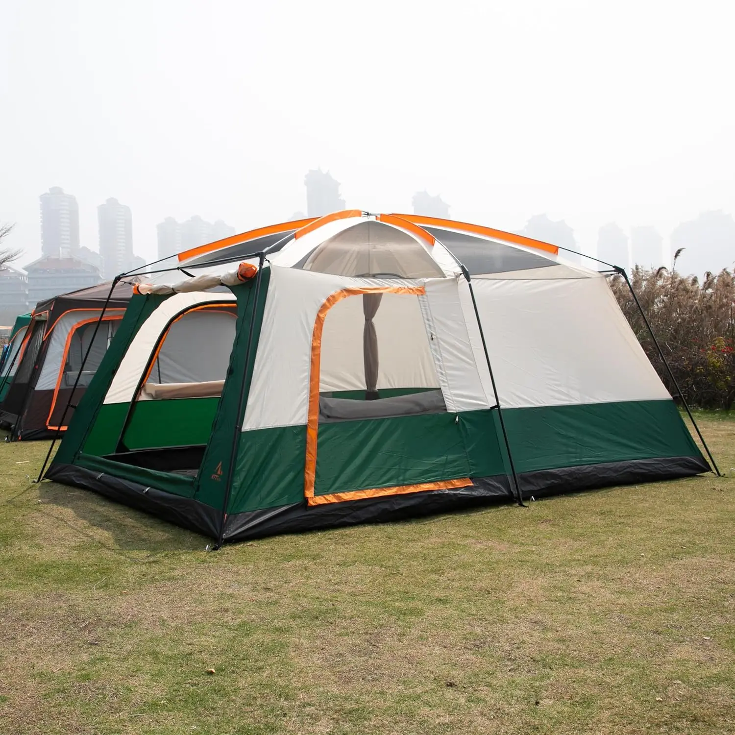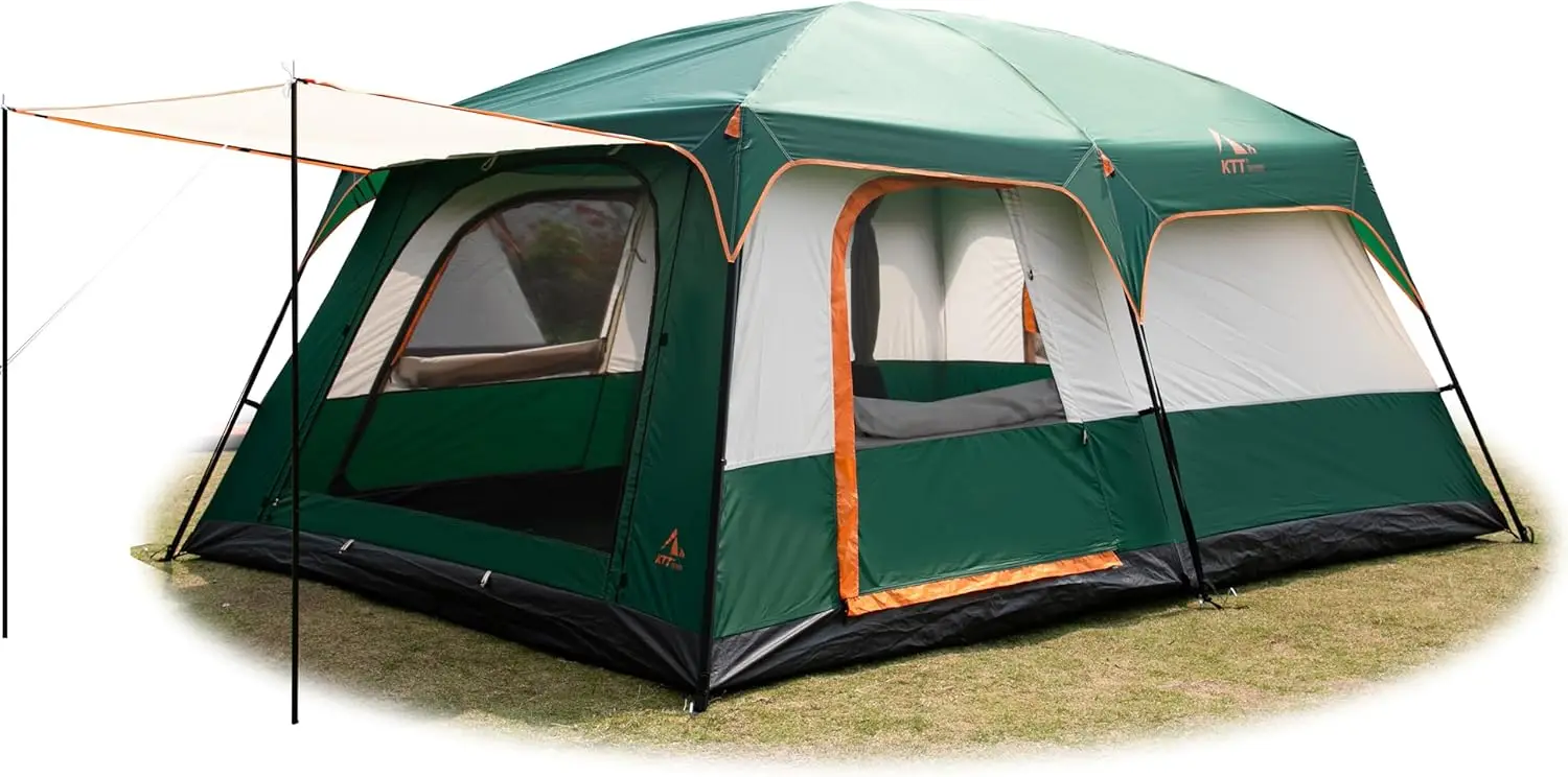 KTT Extra Large Tent 10-12-14 Person(B),Family Cabin Tents,2 Rooms,3 Doors and 3 Windows with Mesh,Straight Wall,Waterproof,Doub
