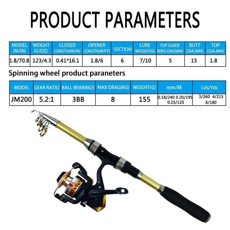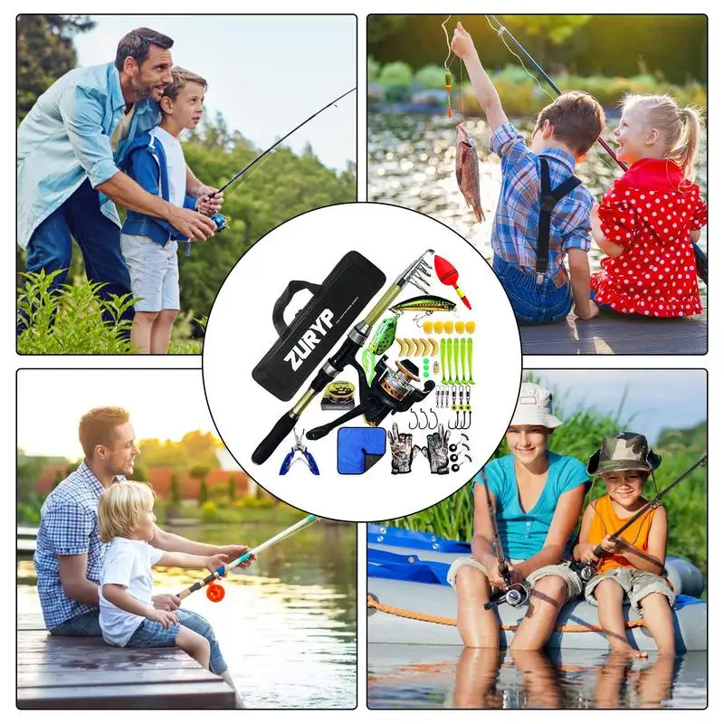 1.Comprehensive Fishing Gear: Get a complete fishing setup with our Fishing Pole Kit. With a fish clamp set, soft bait and otheressential accessories included, this versatile kit has everything you need for a successful fishing trip.
