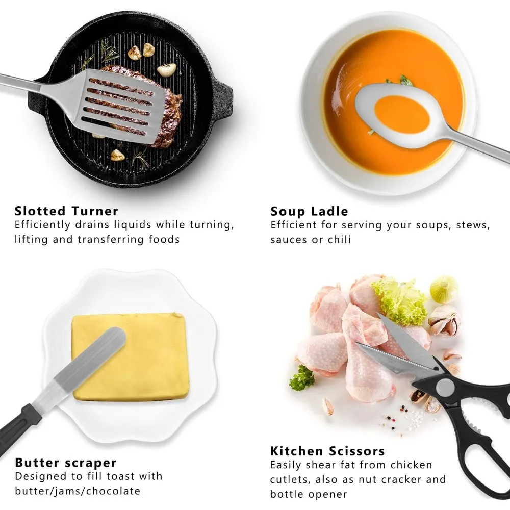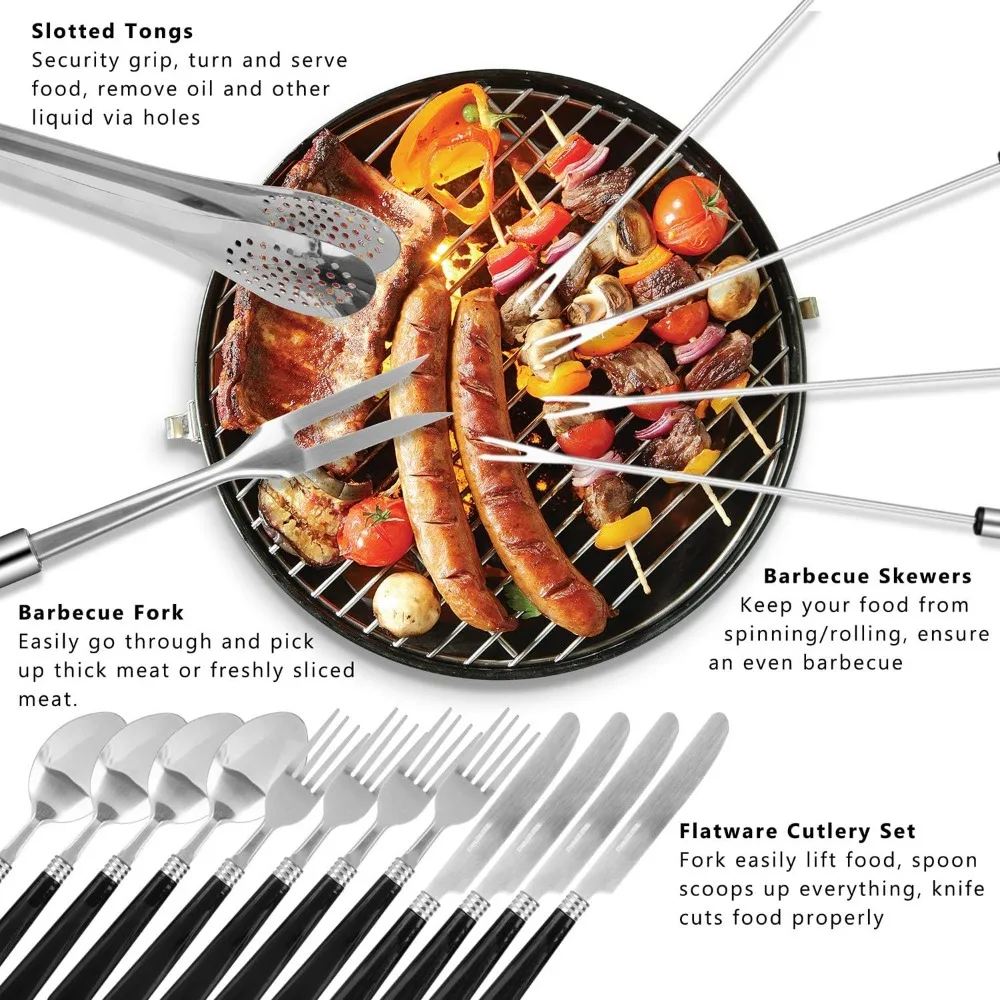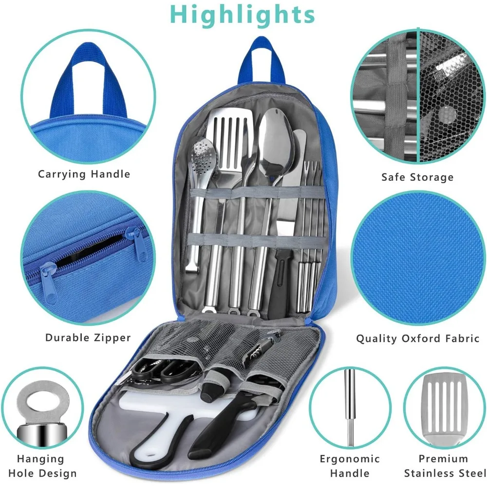 Portable Camping Kitchen Utensil Set, 27-Piece Stainless Steel Outdoor Cooking and Grilling Utensil Organizer