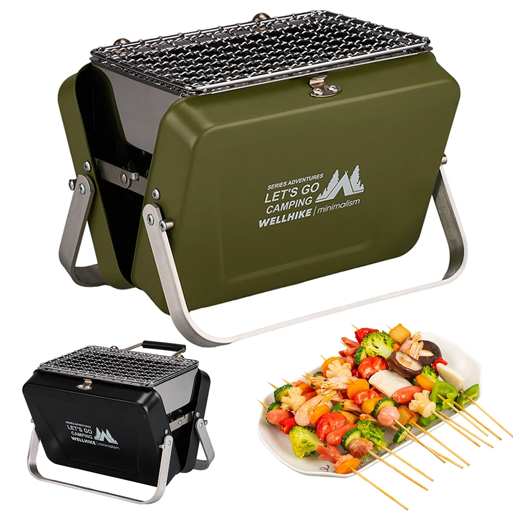Folding Charcoal Grill with Handle Foldable Tabletop Grill Stainless Steel Lightweight Cooking Grill for Camping Patio Backyard