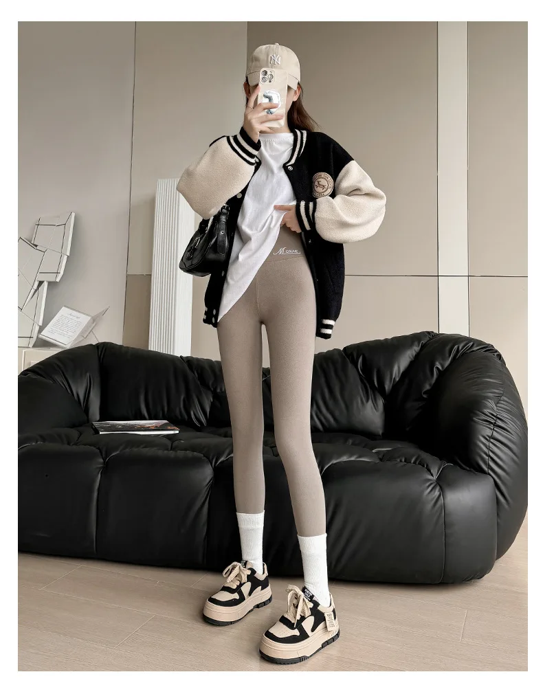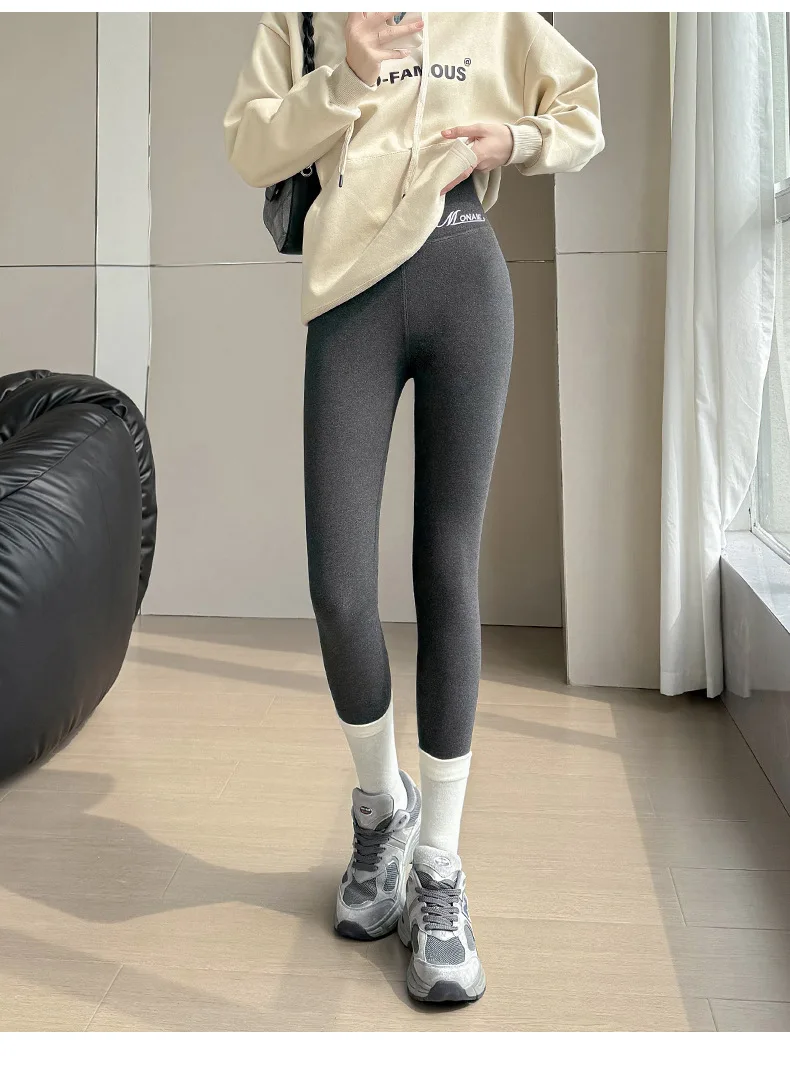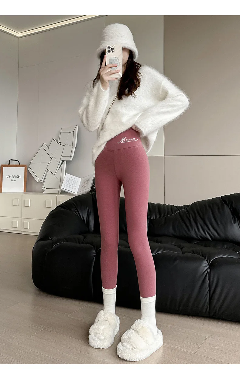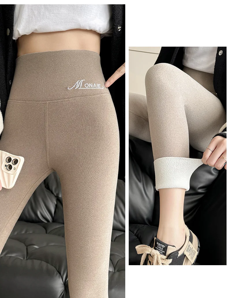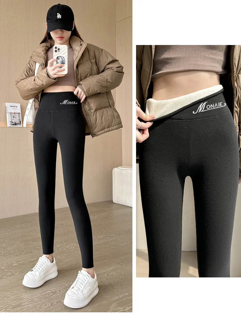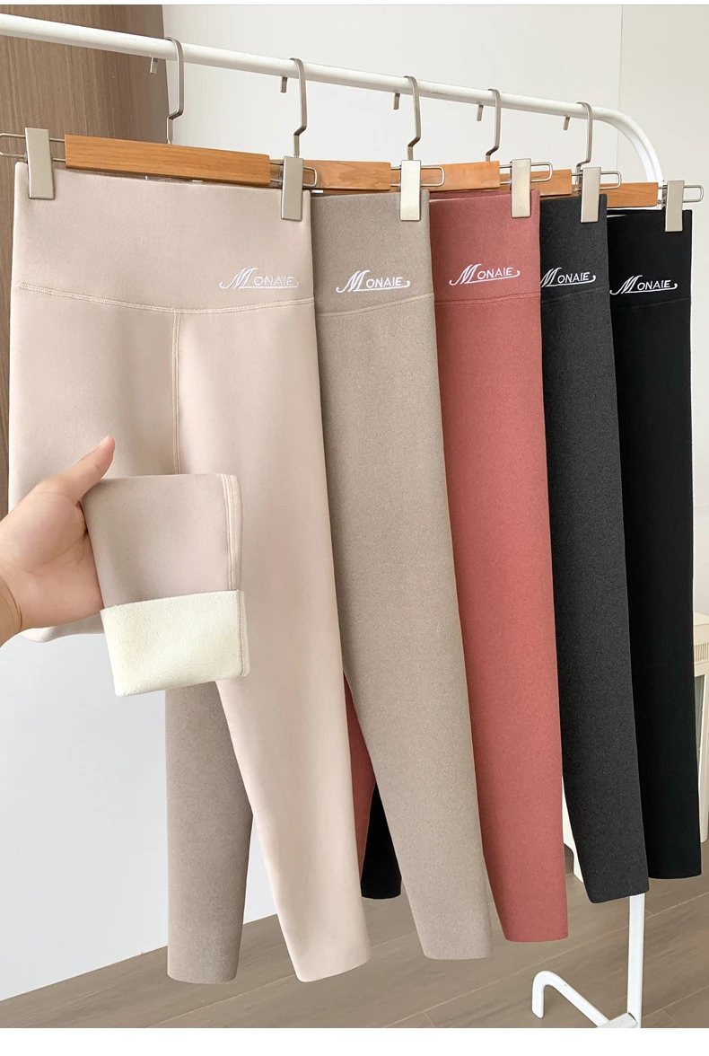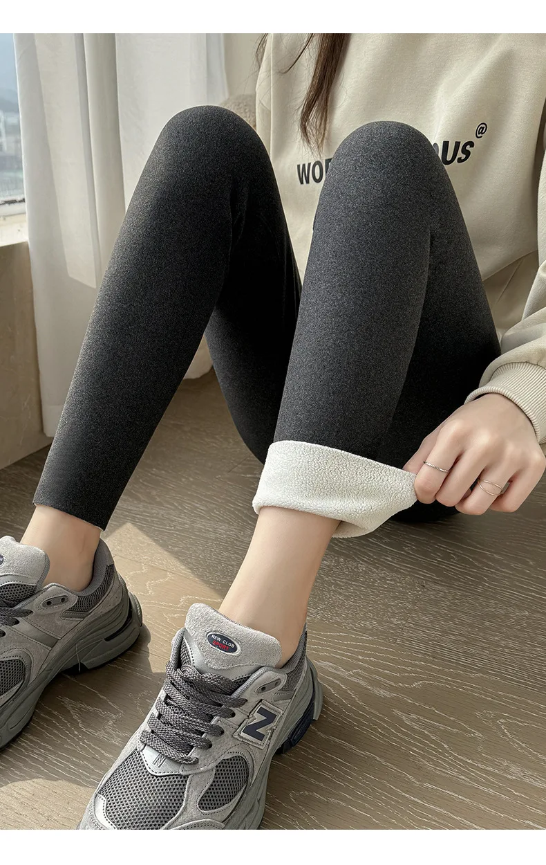 Winter Cashmere Leggings Women Solid Warm Leggings High Waist Slim Stretchy Pants Big Size Adding Velvet and Thickening Pants